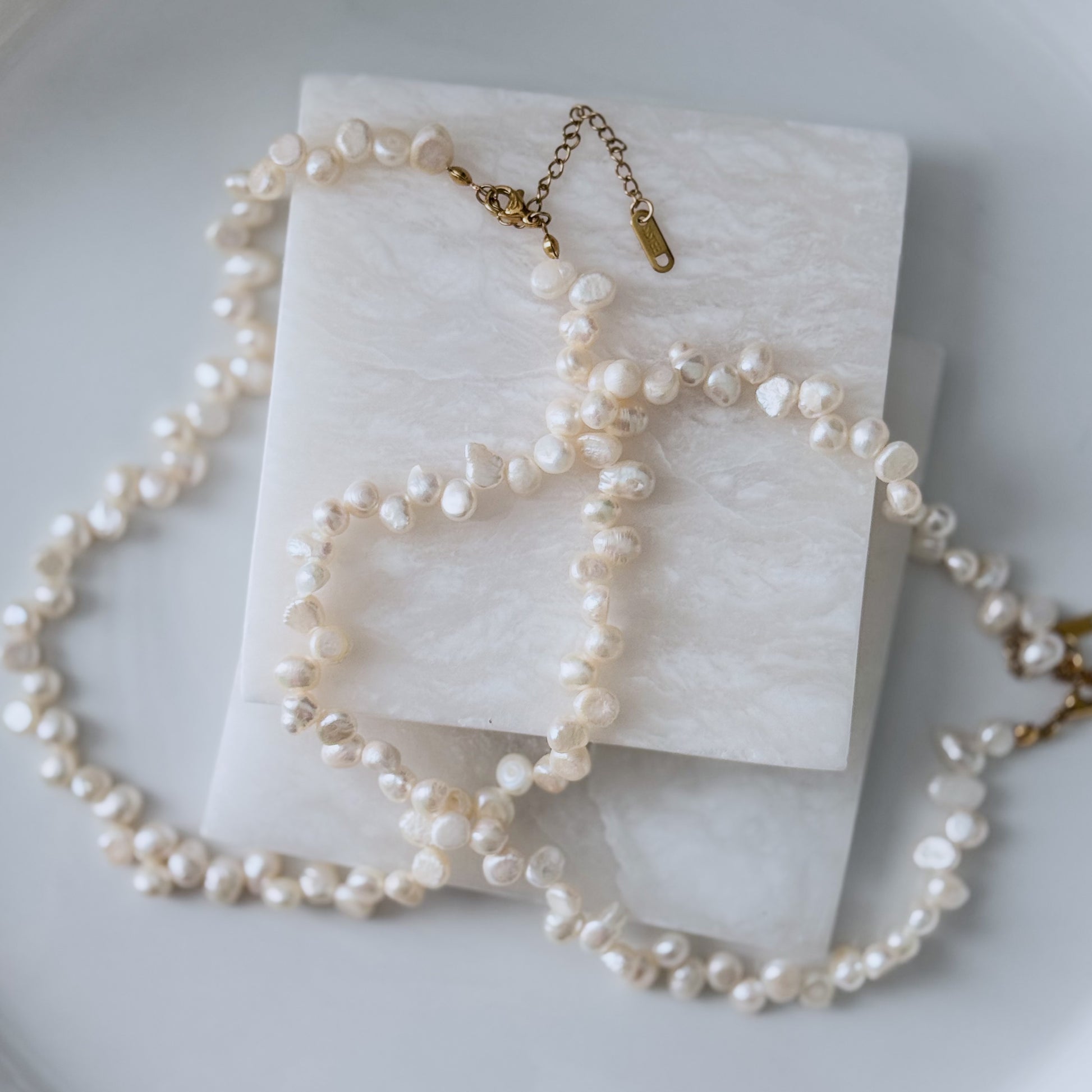 Introducing the Pearlaia Necklace, a stunning blend of pearl and Gaia from Greek mythology. This strong and bold necklace is not just a beautiful accessory, but also a symbol of Mother Earth's strength. From day to night, this necklace will elevate any outfit with its powerful and elegant design.
